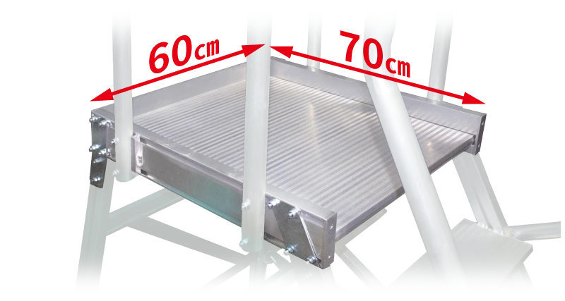 • Large-sized step with 180mm depth, mega top platform size: 600 × 700 mm