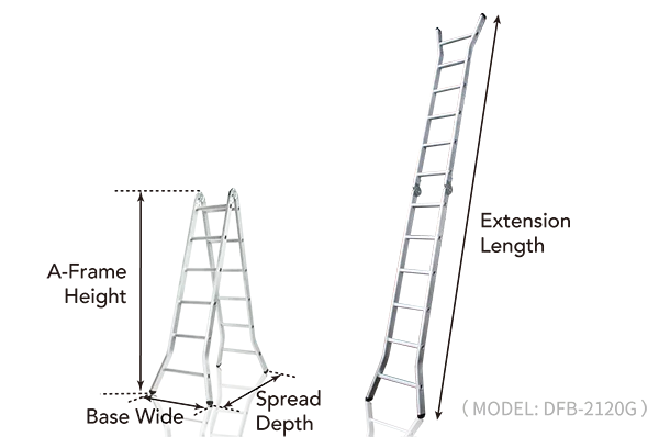 • 2 function (A-frame/ straight ladder) with light weight